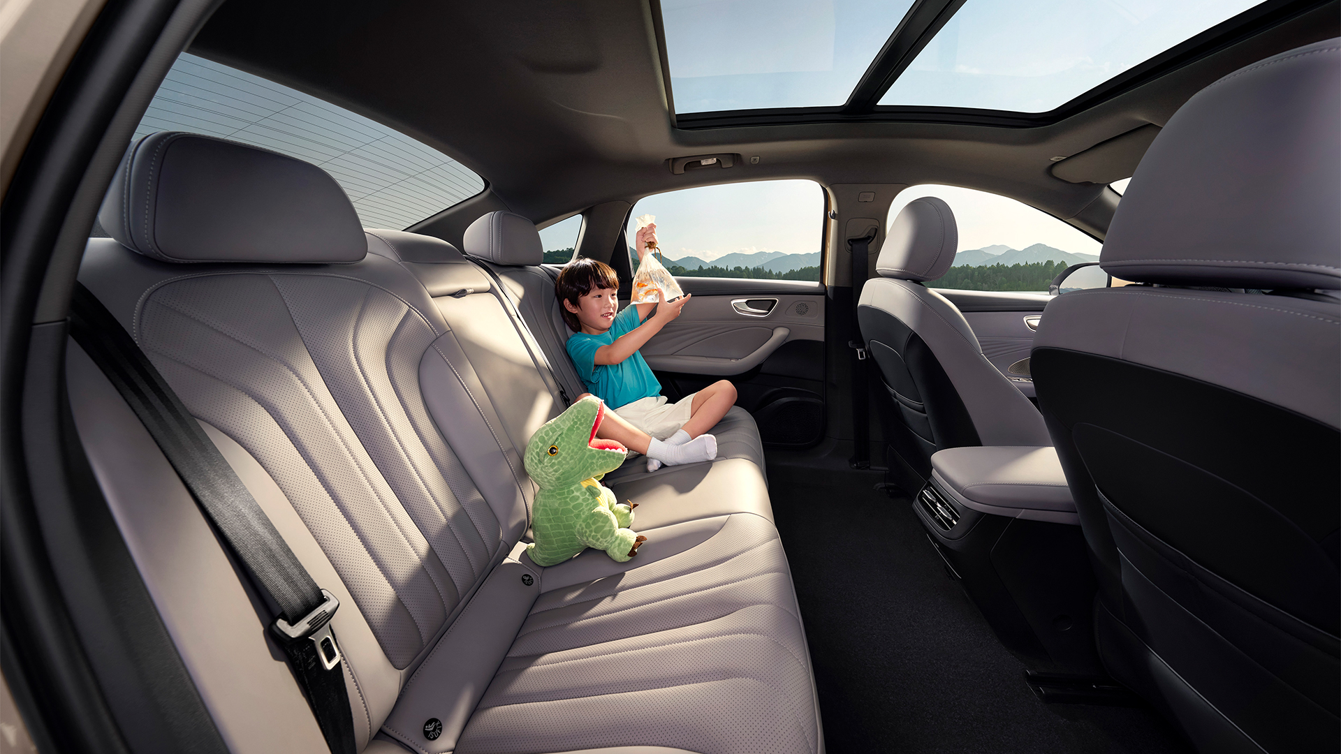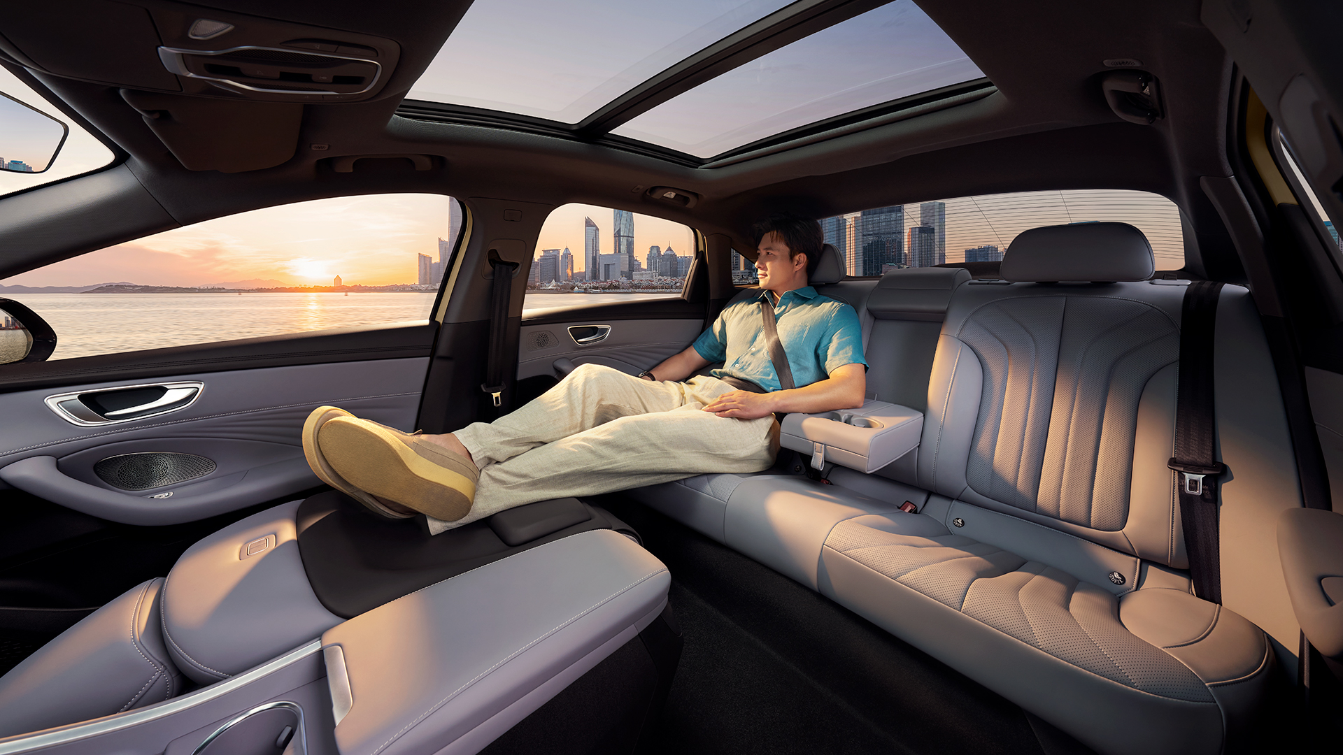 “荣威M7DMH秉承B级行政轿车的标准,打造出宽适非凡的座舱格局。其车身尺寸达到4940mm*1890mm*1510mm, 2820mm的超长轴距,不仅呈现出优雅大气的体态,更将宽敞空间转化为每一位乘员的实际舒享,为您带来真正超越同级的从容气度。